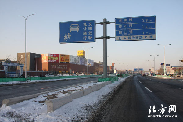通往西青開發區方向的解放南路延長線快速路隔離帶,接連被人私自扒開,大量車輛任意從豁口左轉,以致造成交通擁堵,甚至車禍,這一交通狀況讓很多從此經過的市民十分擔懮。